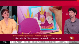 El ilustrador madrileño fue entrevistado el pasado mes de mayo por RTVE gracias a que este mismo año se ha ganado el cariño del público más joven con dos obras muy especiales: «El conejo blanco de Izan» cuyas ilustraciones tienen un carácter muy personal y «Nico, el mono galáctico» escrita e ilustrada por él mismo. Su estilo tan peculiar es una de las características que lo identifica a la hora de ilustrar. A continuación dejamos la entrevista completa para que puedan descubrir el talento de este joven ilustrador.