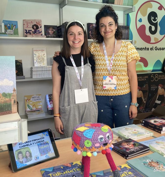 Carmela: Desde que Taburete llegó a nuestras vidas fue una locura. Ir a Valencia sin tiempo, corriendo, cansadas… bueno… una aventura más. Claro que estábamos nerviosas y emocionadas, contentas, felices… conocer a Lara de la editorial… a otros compañeros… firmar un cuento… madre mía, fue MUY bonito. Ahora queremos tomarlo con calma, saborear y disfrutar de cada momento con Taburete y hacerlo bien. La feria de Valencia fue espectacular, somos de una ciudad pequeña y claro la feria de Valencia nos impresionó. La caseta preciosa. Con el festival Nanofest alucinamos muchísimo de todo lo que se lía en Alzira… espectacular. Nos alegra que existan estos eventos y lo mucho que se mueve Alzira.